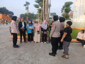 Aksi Humanis.Polwan Polresta Sidoarjo Amankan Car Free Day