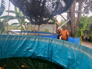 Bhabinkamtibmas Wedoro Dukung Ketahanan Pangan Lewat Budidaya Ikan Patin di Lahan Kosong