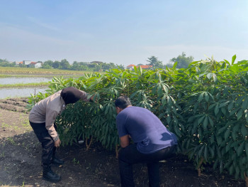 Warga Tanam Singkong Dapat Perhatian Khusus dari Polisi Penggerak Ketahanan Pangan di Pulungan Sedati